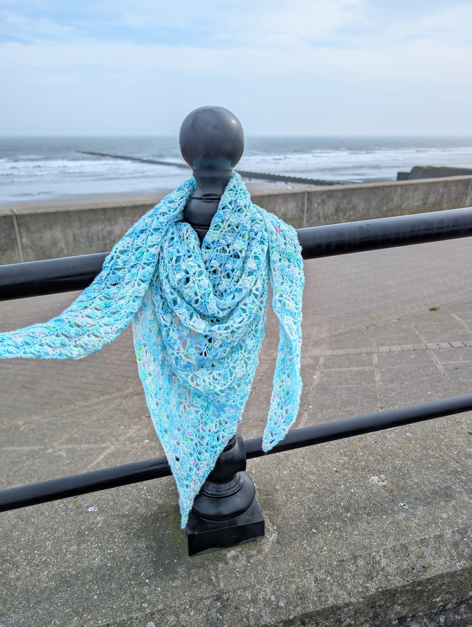 Designed in the Sea Breeze & Cafe Del Mar colourways, this shawl blends soft floral elements with a subtle coastal influence. The result is a shawl that feels fresh, modern, and timeless—ideal for spring and beyond.