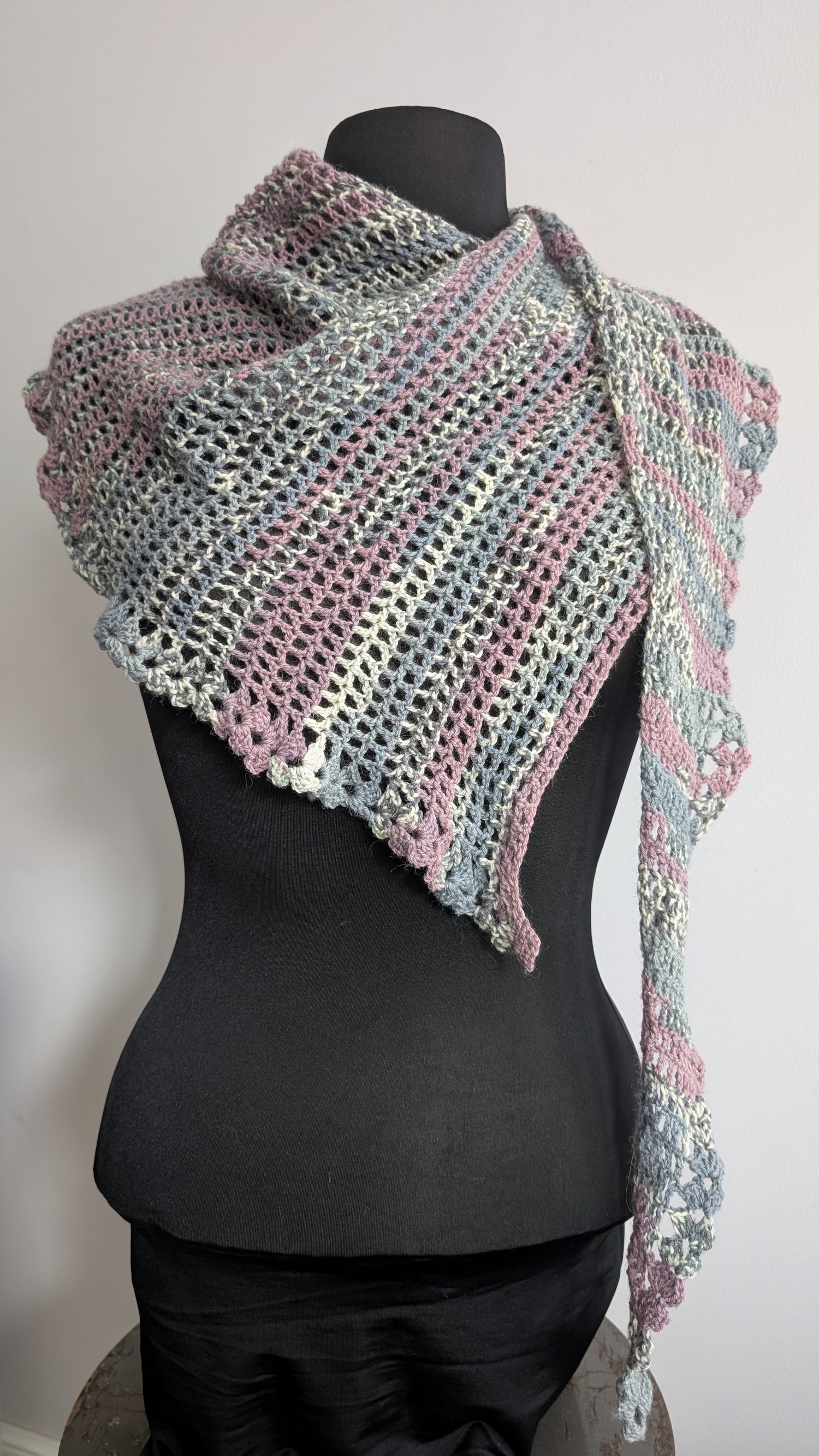 Lightweight, elegant, and perfect for spring, the Breeze & Bloom Shawl features a delicate combination of petal-inspired motifs and openwork mesh. The airy stitch pattern creates a versatile accessory that adds effortless style to any outfit, whether worn as a light layer on cool mornings or draped over your shoulders for an evening out.